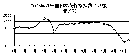 2008年,紡織行業(yè)增加值比上年增長(zhǎng)10.3%,增幅同比回落6.2個(gè)百分點(diǎn);出口交貨值7779億元,增長(zhǎng)4.7%,回落9.5個(gè)百分點(diǎn)。紗產(chǎn)量2149萬(wàn)噸,布產(chǎn)量528億米,分別增長(zhǎng)8.1%和5.3%,回落8.6和6.8個(gè)百分點(diǎn);化纖產(chǎn)量2405萬(wàn)噸,增長(zhǎng)2.3%,回落15.7個(gè)百分點(diǎn);服裝產(chǎn)量206.5億件,增長(zhǎng)4.8%,回落10.2個(gè)百分點(diǎn)。國(guó)內(nèi)棉花價(jià)格上半年小幅上升,三季度開(kāi)始快速下滑。12月末,國(guó)內(nèi)棉花價(jià)格指數(shù)為10953元/噸,比6月末下降21%,同比下降19.3%。1-11月,紡織行業(yè)累計(jì)實(shí)現(xiàn)利潤(rùn)1026億元,同比下降0.7%。其中,紡織業(yè)利潤(rùn)675億元,增長(zhǎng)9.3%;服裝業(yè)利潤(rùn)317億元,增長(zhǎng)13%;化纖業(yè)利潤(rùn)34億元,下降74.9%。