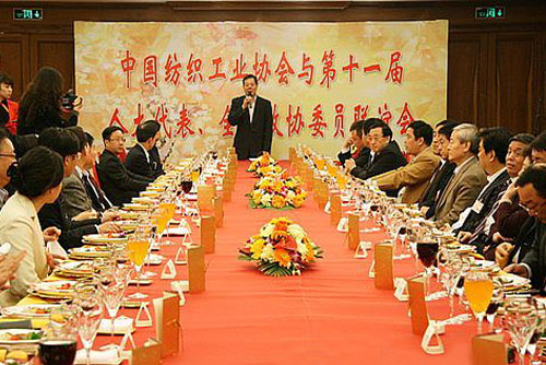許坤元副會(huì)長(zhǎng)(右一)與兩會(huì)代表們?cè)谟H切交談 3月7日中國(guó)紡織工業(yè)協(xié)會(huì)在北京舉行聯(lián)誼會(huì),宴請(qǐng)部分兩會(huì)代表,聽取代表們對(duì)行業(yè)發(fā)展的意見和建議。中國(guó)紡織工業(yè)協(xié)會(huì)會(huì)長(zhǎng)杜鈺洲,副會(huì)長(zhǎng)許坤元、王天凱、陳樹津、楊東輝、高勇、張延愷、孫瑞哲、徐文英,秘書長(zhǎng)楊紀(jì)朝,副秘書長(zhǎng)夏令敏、楊世濱、楊峻,各行業(yè)協(xié)會(huì)等領(lǐng)導(dǎo)出席聯(lián)誼會(huì)。 聯(lián)誼會(huì)期間山東青島喜盈門集團(tuán)董事長(zhǎng)紀(jì)玉君、山東如意科技發(fā)展集團(tuán)有限公司董事長(zhǎng)邱亞夫、上海華日服裝有限公司工會(huì)主席朱雪芹等20多位人大代表們分別就他們?cè)趦蓵?huì)期間所提出、關(guān)注的議案與中國(guó)紡織工業(yè)協(xié)會(huì)領(lǐng)導(dǎo)交流看法,并對(duì)中國(guó)紡織工業(yè)協(xié)會(huì)工作提出很好的建議。
