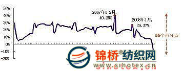 據(jù)中國海關(guān)公布的數(shù)據(jù)顯示,2009年前兩個月全國紡織品服裝出口224.51億美元,較上年同期減少14.78%,這個增速與2002年以來出口增速最高值(2007年1~2月40%)相差55個百分點,出口大幅下滑顯而易見。其中,紡織品、服裝出口雙雙減少,并且紡織品所受到的沖擊更大。今年1~2月紡織品出口78.34億美元,同比下降20.94%,而服裝下降11.07%,達(dá)到146.17億美元。 對于未來走勢,考慮到今年上半年企業(yè)訂單未滿、普遍大眾消費意愿走低、國際市場零售狀況繼續(xù)走跌、全球經(jīng)濟(jì)形勢持續(xù)惡化,盡管G20推出1.1萬億美元經(jīng)濟(jì)刺激計劃以及國家實施紡織工業(yè)振興計劃,但真正的實效還需一段時間才能體現(xiàn),預(yù)計行情還將有一個繼續(xù)下探的過程。 圖1 2002~2009.2全國紡織品服裝出口增速變化情況