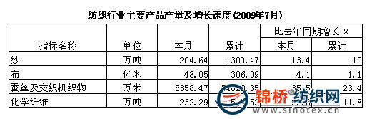 7月份紡織類主要產(chǎn)品產(chǎn)量及增長速度