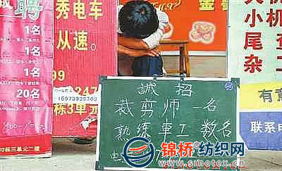 因?yàn)闊o(wú)人應(yīng)聘而酣然入睡的老板。 近日沿海服飾生產(chǎn)企業(yè)招工難的情形開(kāi)始波及內(nèi)地服飾企業(yè)。湖南株洲的一些企業(yè)為招聘工人,不得不到服裝企業(yè)集中的地區(qū)擺攤招工。 據(jù)統(tǒng)計(jì)數(shù)字顯示,株洲市含服飾加工個(gè)體戶(hù)在內(nèi)的生產(chǎn)企業(yè)共有4000余家,從業(yè)人員5萬(wàn)左右。招工難的現(xiàn)象從9月初開(kāi)始大面積出現(xiàn),部分企業(yè)廠(chǎng)房?jī)?nèi)機(jī)器大量閑置,開(kāi)工率普遍在50%以下,甚至出現(xiàn)個(gè)別工廠(chǎng)本有2000人的規(guī)模,而今只有100余人在做工的情況。 |