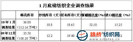 1.棉紡企業(yè)棉花庫(kù)存情況:2009年1-2月國(guó)內(nèi)棉紡企業(yè)棉花采購(gòu)渠道放寬,個(gè)別地區(qū)甚至形成買(mǎi)方市場(chǎng)。隨1初國(guó)家有關(guān)部門(mén)189.4萬(wàn)噸棉花進(jìn)口配額迅速下發(fā),一些雖然采購(gòu)新疆棉卻“遠(yuǎn)水不解近渴”的棉紡廠(chǎng)只得到保稅區(qū)看大貨,進(jìn)口外棉,一些在2009年9、10月提前簽合同、操作進(jìn)口的用棉企業(yè)、流通企業(yè)拿到進(jìn)口配額后也積極使用配額,新疆棉運(yùn)輸瓶頸雖然無(wú)法有效解決,但是優(yōu)先運(yùn)輸一些大中型用棉企業(yè)的棉花,使內(nèi)地市場(chǎng)無(wú)法形成集中采購(gòu)、批量運(yùn)輸?shù)那闆r,鄭棉期貨、電子撮合的下跌也激起涉棉企業(yè)采購(gòu)倉(cāng)單的熱情,部分大中型廠(chǎng)棉花補(bǔ)庫(kù)工作也接近尾聲,引起內(nèi)地部分囤棉企業(yè)恐慌,據(jù)悉,目前電子盤(pán)倉(cāng)單主要由新疆、湖北、山東等地棉企生成。據(jù)調(diào)結(jié)果顯示,49.5%企業(yè)增加棉花庫(kù)存,17.4%企業(yè)減少,另33.1%企業(yè)與上月基本持平;綜合平均棉花庫(kù)存由12月底的35.50天上升至1月底的36.80天,折合棉花工業(yè)庫(kù)存量由108.20萬(wàn)噸增加至112.16萬(wàn)噸。各企業(yè)庫(kù)存分化繼續(xù)加大,一些大中型棉企庫(kù)存在2個(gè)月左右,中小棉紡企業(yè)最低僅15-16天。