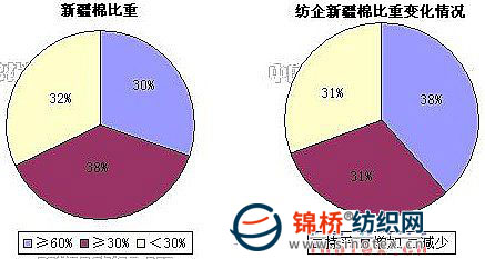 4、棉紡織企業(yè)新疆棉占總用棉比重:新疆棉出運(yùn)困難依然是新疆棉業(yè)發(fā)展的主要瓶頸,也制約的內(nèi)地企業(yè)的采購及使用。調(diào)查結(jié)果顯示,被調(diào)查企業(yè)中,31%增加新疆棉使用量,31%減少新疆棉使用量。紡織企業(yè)新疆棉占總用棉比重由上月的50.4%減少至49.95%。