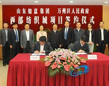 昨日,山東如意集團、萬州區(qū)人民政府在江南行政中心舉行西部紡織城項目簽約儀式。