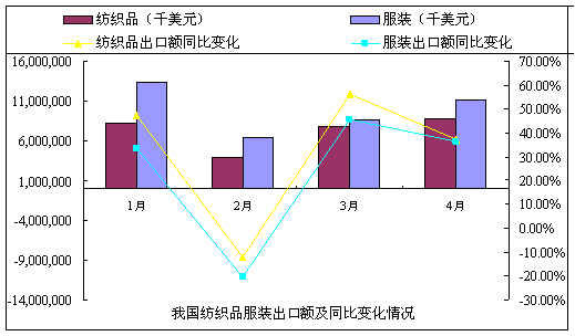 2011年4月紡織品服裝出口情況