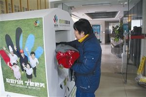 昨天中午,江北北岸琴森社區(qū)居委會(huì)里,居民們絡(luò)繹不絕地抱著舊衣服往一個(gè)白色的箱子里投放。
