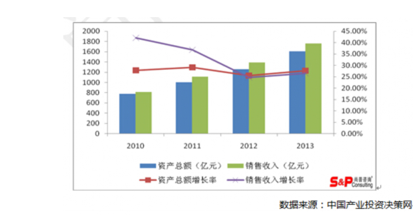 中國紡織機(jī)械制造行業(yè)在近幾年保持快速的發(fā)展勢頭。截至2010年底,行業(yè)資產(chǎn)總額達(dá)到776.13億元,同比增長27.78%;行業(yè)實(shí)現(xiàn)銷售收入815.65億元,同比增長42.13%。截至2011年底,行業(yè)資產(chǎn)總額達(dá)到1002.37億元,同比增長29.15%;行業(yè)實(shí)現(xiàn)銷售收入1115.89億元,同比增長36.81%。截至2012年底,行業(yè)資產(chǎn)總額達(dá)到1257.57億元,同比增長25.46%;行業(yè)實(shí)現(xiàn)銷售收入1390.62億元,同比增長24.62%。截至2013年底,行業(yè)資產(chǎn)總額達(dá)到1605.04億元,同比增長27.63%;行業(yè)實(shí)現(xiàn)銷售收入1758.99億元,同比增長26.49%。總體看來,在經(jīng)歷了2008年行業(yè)增速下滑之后,近兩年行業(yè)規(guī)模擴(kuò)張速度顯著加快,整體發(fā)展態(tài)勢良好。