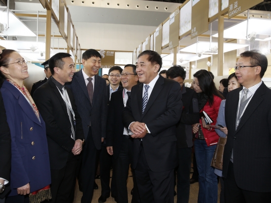 圖為王天凱(前右二)一行在展會(huì)現(xiàn)場與企業(yè)負(fù)責(zé)人親切交談。