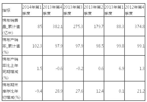 2013年我國棉布累計銷量達382.1億米