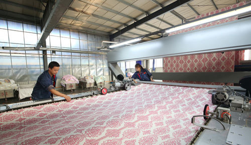 20日,保定高陽縣三利集團使用新引進的德國拉幅定型機進行生產(chǎn)。