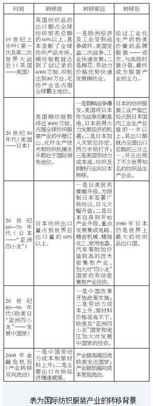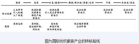 國際紡織服裝產(chǎn)業(yè)的轉(zhuǎn)移路線