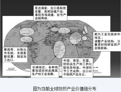 一是第三產(chǎn)業(yè)的投資成為國際產(chǎn)業(yè)轉(zhuǎn)移中的新熱點。投資方式中,研究開發(fā)和第三產(chǎn)業(yè)對外直接投資額迅速增加,投資比例也同時增加;二是國際紡織服裝產(chǎn)業(yè)轉(zhuǎn)移出現(xiàn)跳躍性。國際化發(fā)展順序可以從跨國公司體系內(nèi)的任何部位開始,價值增值鏈的任何部分均可安排在能為提高公司整體業(yè)績作出最大貢獻的地方進行;三是生產(chǎn)外包成為國際紡織服裝產(chǎn)業(yè)轉(zhuǎn)移的新興主流方式。其中,OEM生產(chǎn),也稱為定點生產(chǎn),成為主要的生產(chǎn)外包形式;四是國際紡織服裝產(chǎn)業(yè)轉(zhuǎn)移出現(xiàn)產(chǎn)業(yè)供給鏈整體搬遷趨勢;五是國際紡織服裝產(chǎn)業(yè)轉(zhuǎn)移,由產(chǎn)業(yè)結構的梯度轉(zhuǎn)移逐步演變成增值環(huán)節(jié)的梯度轉(zhuǎn)移。其中,全球價值鏈分為三個環(huán)節(jié):技術環(huán)節(jié)、生產(chǎn)環(huán)節(jié)、營銷環(huán)節(jié)??鐕驹谌蚍秶鷥?nèi)尋找資源的最佳配置,根據(jù)各國的特點,分別把各個環(huán)節(jié)轉(zhuǎn)移到最能增強其競爭優(yōu)勢的國家去。