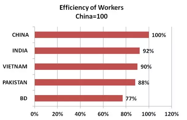 孟加拉成衣制造業(yè)的優(yōu)勢主要包括,低廉的價格、達到國際標準的產(chǎn)品、年輕的人口結(jié)構(gòu)、向主要發(fā)達國家出口零關(guān)稅,印染等配套產(chǎn)業(yè)鏈快速發(fā)展等。其中,人口紅利優(yōu)勢明顯,孟加拉有5670萬工作人口,其中的76%都在40歲以下。每年大概有兩百萬新增就業(yè)人口。但是,孟加拉也面臨著勞動率低下的問題,勞動率僅為中國的77%。