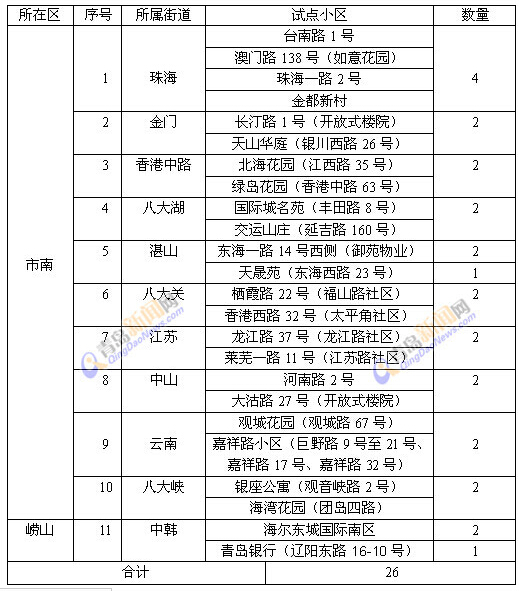 附:市南區(qū)、嶗山區(qū)26處舊衣物回收箱試點小區(qū)