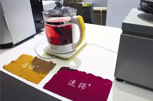 “還記得在今年的中國國際紡織紗線(春夏)展覽會上有現(xiàn)場染色的展示:在用‘逸綿’重要品種——‘儀綸’纖維織造的面料上,用普通滌綸繡花線繡上‘逸綿’二字,然后將樣品投入分散染料染液進(jìn)行常壓沸染。染后普通滌綸繡花線基本不上色,而‘儀綸’面料顏色鮮亮,且色牢度好,這種極佳的常壓染色性能給現(xiàn)場觀眾留下深刻印象,我們感到非常欣慰。”中國紡織科學(xué)研究院負(fù)責(zé)“逸綿”相關(guān)工作的廉志軍教授這樣告訴記者。