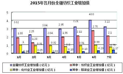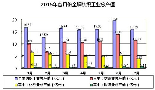 2015年1-7月新疆紡織工業(yè)經(jīng)濟(jì)運(yùn)行狀況