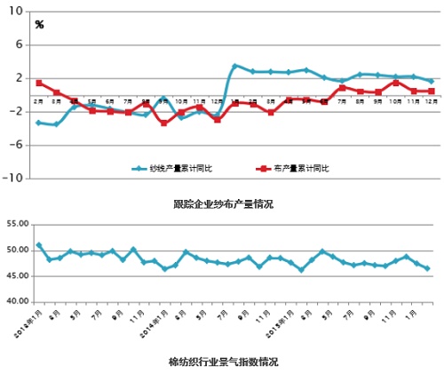 運行質(zhì)效。協(xié)會跟蹤的企業(yè)產(chǎn)量數(shù)據(jù)略好于全國平均水平,企業(yè)紗產(chǎn)量低速增長,增速回落;跟蹤企業(yè)經(jīng)濟效益穩(wěn)中向好,骨干企業(yè)主營業(yè)務(wù)收入同比增3.77%,虧損面縮小6.62個百分點,跟蹤企業(yè)利潤高于行業(yè)平均,全年利潤總體回升,2016年開年至今主營業(yè)務(wù)收入、利潤雙雙增長;從景氣指數(shù)看,全年行業(yè)景氣度不佳;集群經(jīng)營效益后勁不足,優(yōu)勢龍頭企業(yè)訂單穩(wěn)定,運轉(zhuǎn)良好。