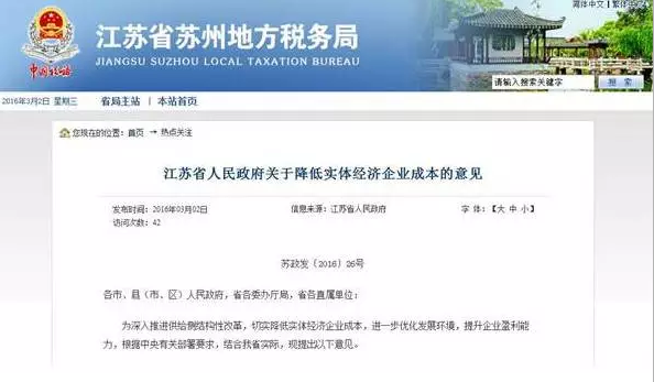 2016年2月29日,江蘇省政府舉行新聞發(fā)布會宣布,省、市、縣(市、區(qū))三級政府出臺減輕實體經(jīng)濟企業(yè)負擔舉措,給江蘇省150多萬家相關(guān)企業(yè)送上了政策“大紅包”——年減負逾千億元!其中省政府出臺的政策措施落地,可給企業(yè)降低成本約600億元。