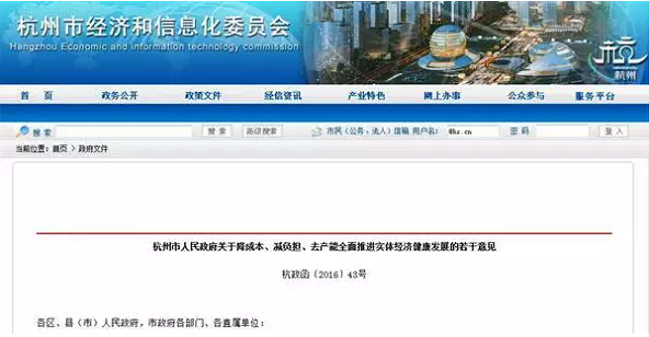 1、杭州市出臺《關(guān)于降成本、減負擔、去產(chǎn)能全面推進實體經(jīng)濟健康發(fā)展的若干意見》為實體經(jīng)濟企業(yè)減負270億元