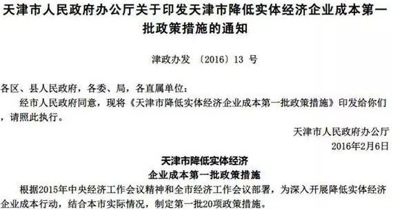 3、天津市20項措施出臺《降低實體經(jīng)濟企業(yè)成本行動實施方案》