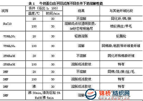 上海出入境檢驗(yàn)檢疫局對(duì)牛奶纖維的檢測(cè)做了以下幾種試驗(yàn):