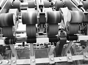 細(xì)紗牽伸機(jī)構(gòu)發(fā)展經(jīng)歷了原始牽伸、簡(jiǎn)單羅拉牽伸和雙皮圈牽伸三個(gè)歷史階段。目前,雙皮圈牽伸形式已是一種非常成熟的技術(shù),特別是在生產(chǎn)棉型纖維紗線中優(yōu)勢(shì)明顯。緊密紡技術(shù)的突飛猛進(jìn)對(duì)雙皮圈牽伸形式進(jìn)行了有力的補(bǔ)充,雙皮圈緊密紡紗線表面光潔、毛羽少,產(chǎn)品檔次得到提高;賽絡(luò)紡技術(shù)在雙皮圈牽伸上應(yīng)用也有很好效果等等,都說明了雙皮圈牽伸技術(shù)的強(qiáng)大生命力