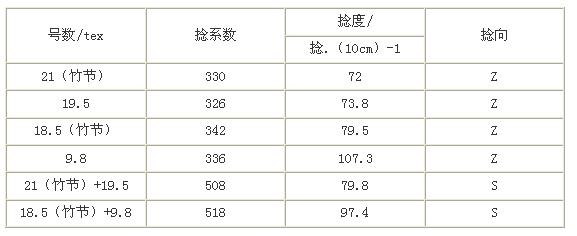 4.1紡紗捻系數(shù)選擇(見表3)
