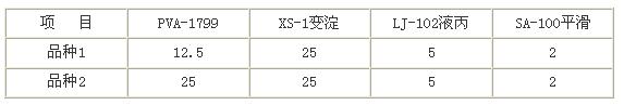 表6 漿料配方