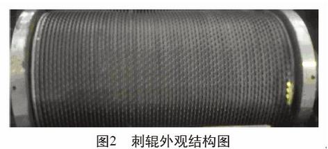 制樣機(jī)的開松作用主要是由刺輥和喂給羅拉這個(gè)開松單元來完成的,所以刺輥的合理設(shè)計(jì)顯得尤為重要,是該制樣機(jī)設(shè)計(jì)的關(guān)鍵,外觀結(jié)構(gòu)如圖2所示。