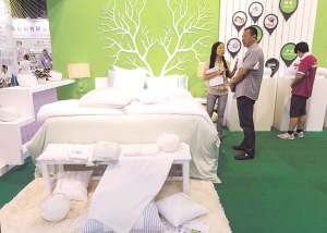 圖為海興材料科技有限公司在家紡展上展示的舒彈絲填充產(chǎn)品。