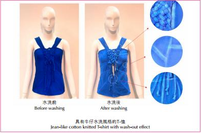 世界上首創(chuàng)成功應用活性染料對棉針織布進行表面染色,并制造具有時尚牛仔服裝水洗效果的T-恤.還具有低碳環(huán)保生產(chǎn)的優(yōu)點