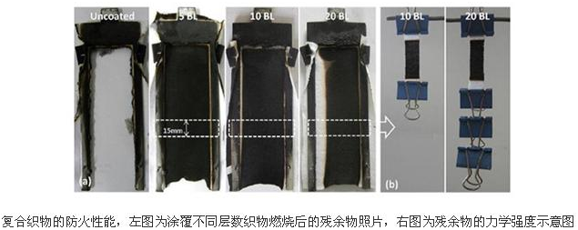 研究人員選擇了一種帶有正電荷且具有阻燃特征元素的抗菌劑水溶液,并與另一種帶有負(fù)電荷的阻燃劑協(xié)同,在棉織物上構(gòu)筑了一層功能涂層,一方面兩種阻燃劑構(gòu)成了完整的膨脹型阻燃體系,具有快速自熄、高效防火的特點(diǎn);另一方面抗菌劑發(fā)揮了優(yōu)良的抗菌效果,對(duì)大腸桿菌和金黃色葡萄球菌等不同類型的細(xì)菌都具有很好的抑制作用。