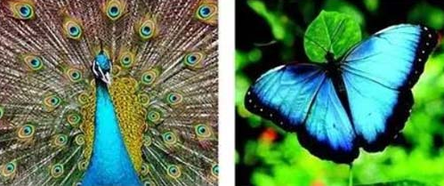 《PNAS》雜志刊登了一項(xiàng)研究成果—《孔雀羽毛的色彩策略》。此項(xiàng)研究表明,小羽枝表皮下面的周期結(jié)構(gòu)是羽毛具有顏色的原因。與此同時(shí),一些專家在研究蝴蝶翅膀時(shí),也揭示了這個(gè)秘密——翅膀上的納米結(jié)構(gòu)是蝴蝶的“色彩工廠”。
