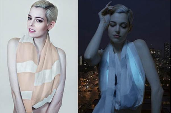 據(jù)美國網(wǎng)站PSFK報道,chameleon圍巾是由含有多層相互覆蓋但隔離的顏色層織物組成,每一層都代表一種顏色和風格。顏色層轉(zhuǎn)換受到很多因素的影響,當周圍的溫度升高或降低時,圍巾的顏色會變淺或變深。