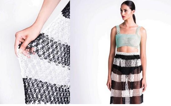 Danit Peleg在使用傳統(tǒng)ABS材質(zhì)進(jìn)行試驗(yàn)失敗之后,發(fā)現(xiàn)了一種強(qiáng)韌但柔軟的材質(zhì),稱之為FilaFlex。這種材質(zhì)的感覺就像布一樣柔軟,但同時(shí)具有柔韌性,可以像布一樣實(shí)現(xiàn)花邊、條紋等復(fù)雜的幾何圖形設(shè)計(jì),并實(shí)現(xiàn)極好的舒適性和透氣性。而整個(gè)打印條件,僅需要一臺(tái)普通的3D打印機(jī)即可實(shí)現(xiàn)。