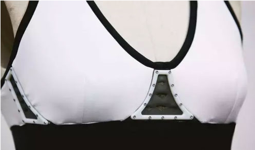 Chromat Aeros Sports Bra運(yùn)動(dòng)內(nèi)衣似乎更加實(shí)用,由萊卡,網(wǎng)眼,氯丁橡膠及3D打印框架組成。像裙子一樣,運(yùn)動(dòng)內(nèi)衣也是在檢測到穿戴者出汗、呼吸或體溫變化后利用集成形狀記憶合金打開內(nèi)衣的通風(fēng)口,幫助穿戴者透氣。當(dāng)穿戴者體溫恢復(fù)正常后,通風(fēng)口將自動(dòng)關(guān)閉。