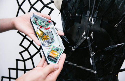 至于另一個(gè)產(chǎn)品Adrenaline Dress工作原理也類似,不過(guò)在技術(shù)上加入了情緒表達(dá)的功能。這件服裝結(jié)構(gòu)會(huì)在穿戴者情緒高漲時(shí)呈現(xiàn)明顯沙漏型,運(yùn)用了3D打印技術(shù)和邏輯學(xué)和Curie組件。不過(guò)在這件服飾上,Curie的創(chuàng)造力得以發(fā)揮。雖這件連衣裙可能在外表的美觀上還需要實(shí)驗(yàn),但是Aeros內(nèi)衣已經(jīng)達(dá)到成品標(biāo)準(zhǔn),今年就能上市給大街小巷的女士們穿戴。