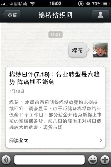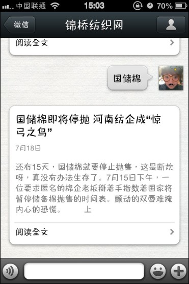 錦橋紡織網(wǎng)—資訊頻道> 公告欄>正文 用微信搜最新紡織資訊