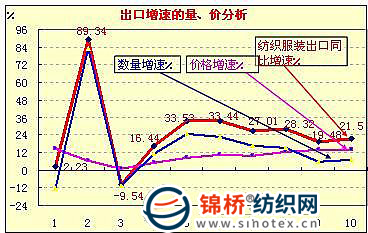 據對今年我國紡織服裝出口增速計算分析:前8個月數量增長是紡織服裝增長的主要因素,9月份后價格上漲則是推動出口額增長的主要動能。