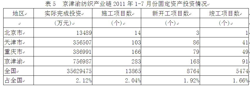 5京津渝紡織產(chǎn)業(yè)鏈固定資產(chǎn)投資情況