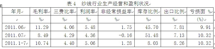 4紗線行業(yè)生產(chǎn)經(jīng)營和盈利狀況