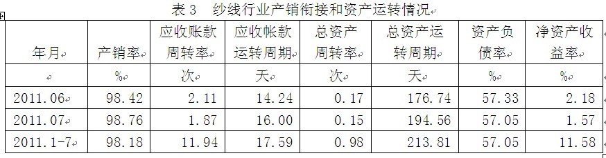 3紗線行業(yè)產(chǎn)銷銜接和資產(chǎn)運轉(zhuǎn)情況