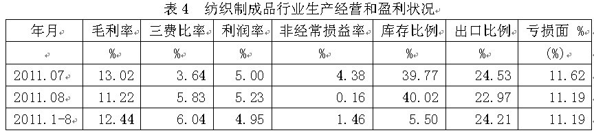 4紡織制成品行業(yè)生產(chǎn)經(jīng)營和盈利狀況