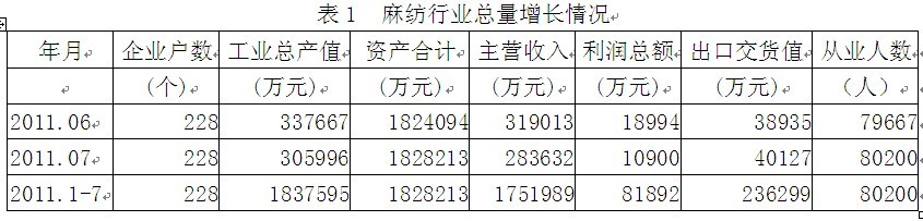 2011年1-7月麻紡行業(yè)經(jīng)濟(jì)運(yùn)行分析