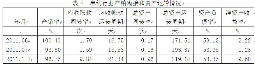 4麻紡行業(yè)產(chǎn)銷銜接和資產(chǎn)運(yùn)轉(zhuǎn)情況
