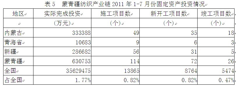 5蒙青疆紡織產(chǎn)業(yè)鏈固定資產(chǎn)投資情況