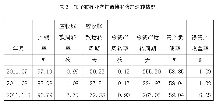 3簾子布行業(yè)產(chǎn)銷銜接和資產(chǎn)運轉(zhuǎn)情況