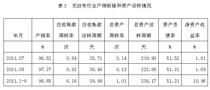 3無(wú)紡布行業(yè)產(chǎn)銷銜接和資產(chǎn)運(yùn)轉(zhuǎn)情況