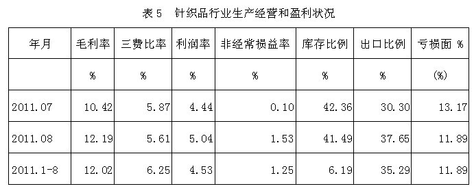 5針織品行業(yè)生產(chǎn)經(jīng)營(yíng)和盈利狀況