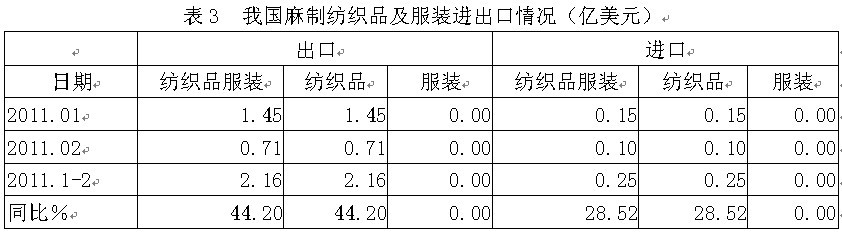3麻制紡織品服裝進(jìn)出口情況